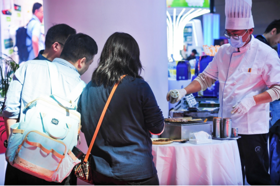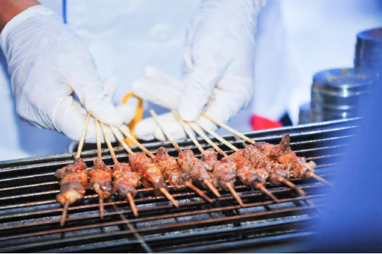 在滩羊肉串烤制过程中,展位前已形成蜿蜒的长队。参展商、市民观众及媒体从业者纷纷驻足,被独特香气吸引。一位来自福建的采购商表示:“原本计划考察展会合作项目,被香气吸引。从肉质色泽来看,品质值得期待。”现场烧烤师傅规范操作,通过精准控制火候保证肉质口感,让观众对产品品质形成初步认可。