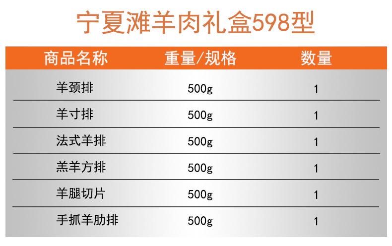 10袋:蝴蝶排、羊蝎子、羊寸排、羊腿切片、法式羊排、羔羊方排、手抓羊肋排