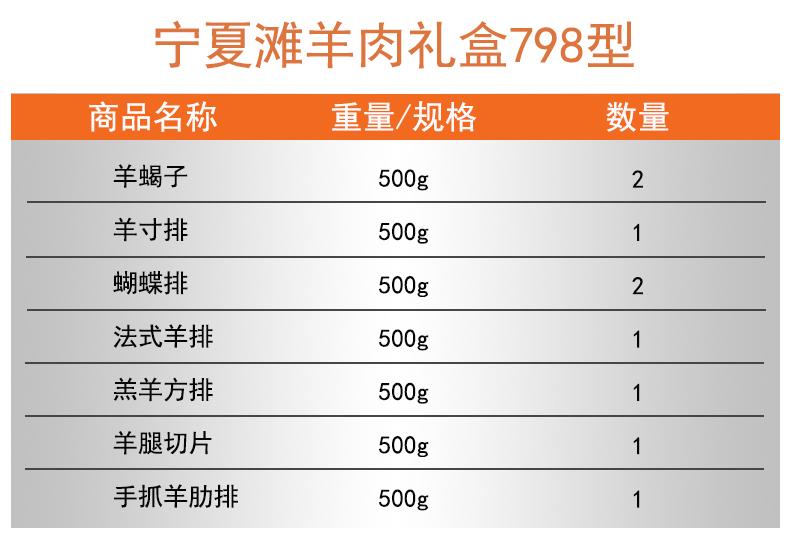 10袋:蝴蝶排、羊蝎子、羊寸排、羊腿切片、法式羊排、羔羊方排、手抓羊肋排