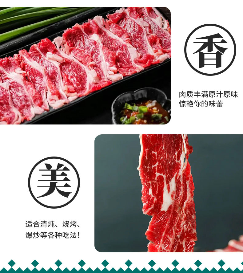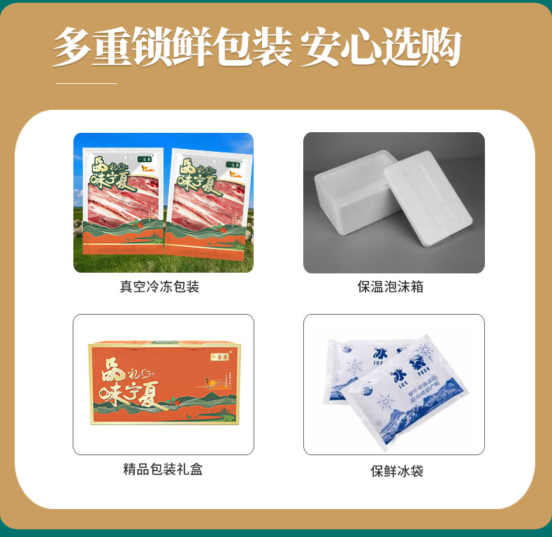 4袋:牛腱子、牛上脑、羊寸排、羊腿切片